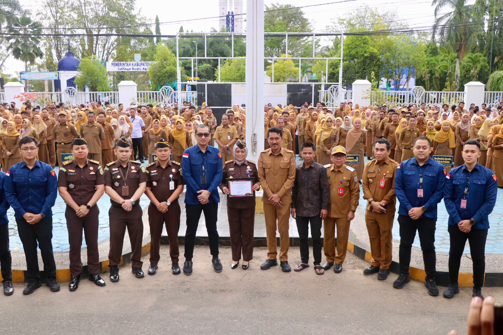 MARTAPURA – Pemerintah Kabupaten Banjar menggelar apel kerja gabungan di halaman Kantor Bupati Banjar, Martapura, Senin (7/7/2025) pagi.
